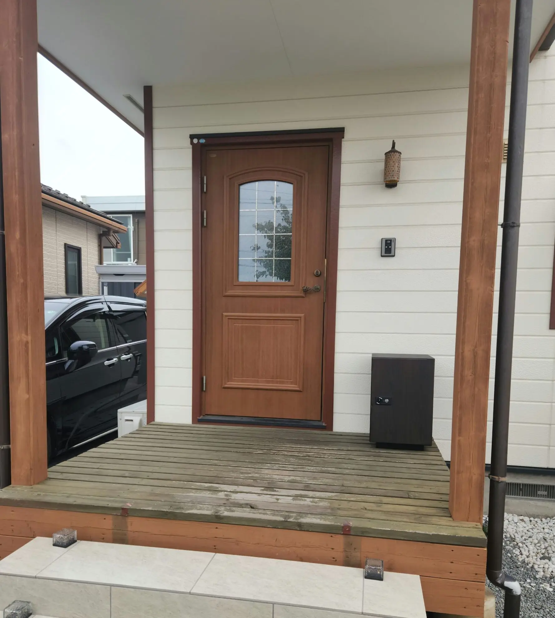 今回は、南アルプス市にお住まいのお客様の玄関のデッキの塗装を行いました😊